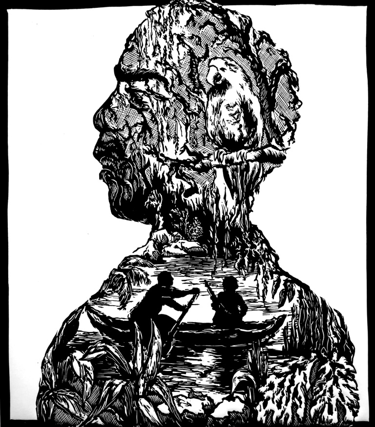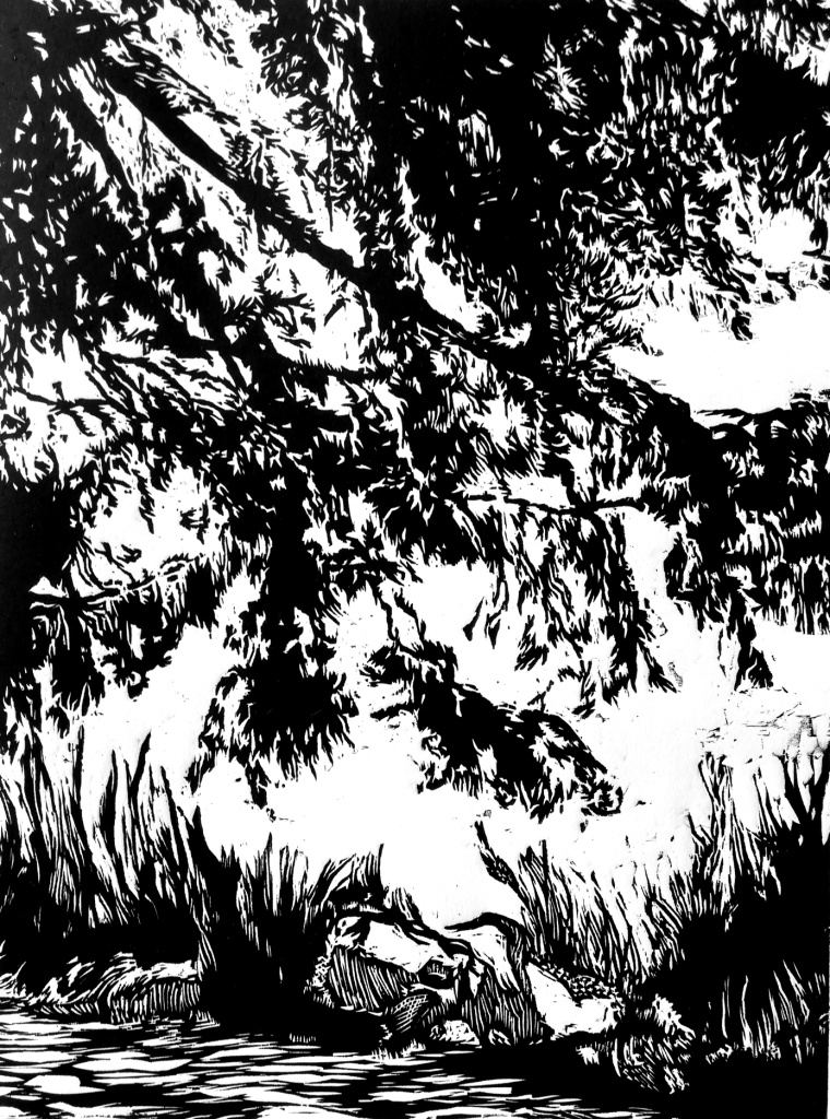 Linogravure couleurs et pointe sèche